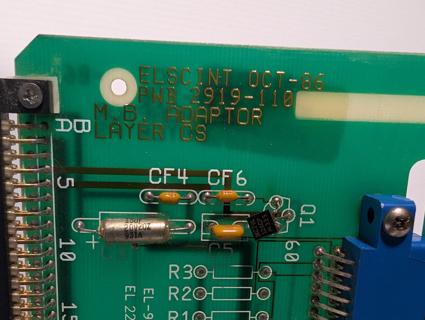 Teradyne 532-0106-0232 9331. ACM 47029191104 Board. Manufactured 1986 for Elscint. Medical, Nuclear Imaging. PWB 2919-110. MB Adaptor. Layer CS. Intel 86. TexTool/ 3M Sockets. ETSA Sullins EZC30DTMS. From a closing industrial facility.