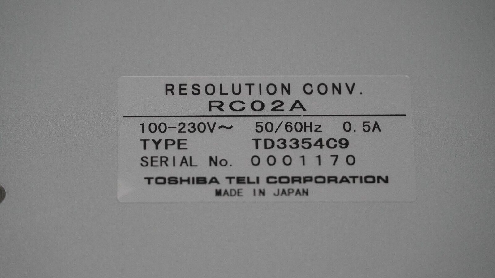 Toshiba Teli RC02A resolution conv., type TD3354C9. From the stockroom of a closing medical facility. Tested September 2023 and working well.