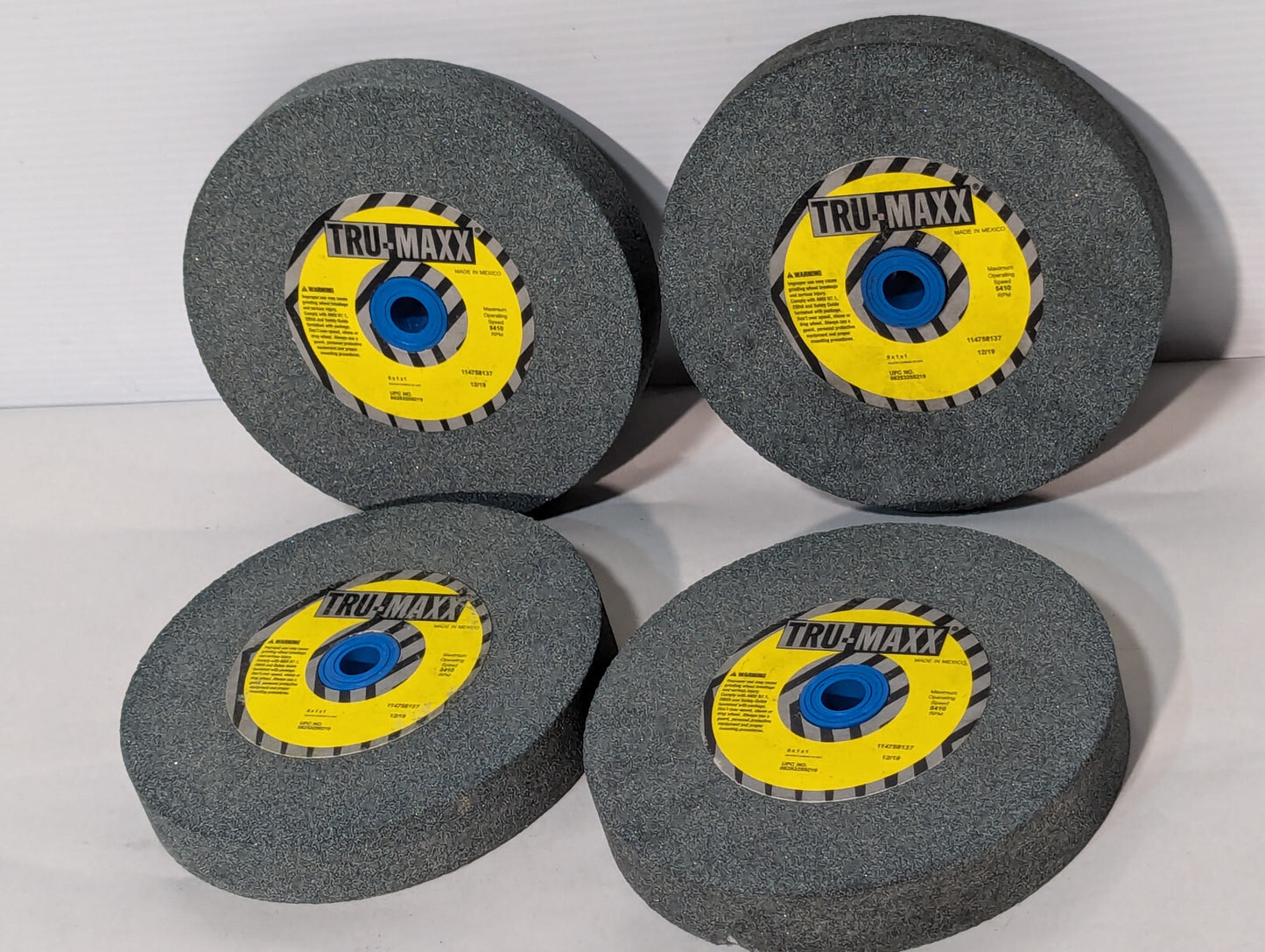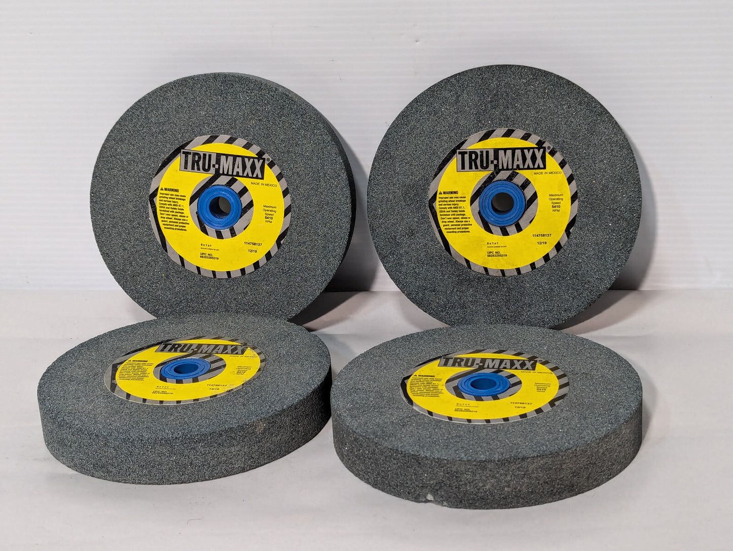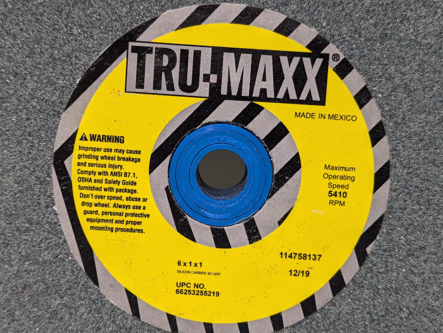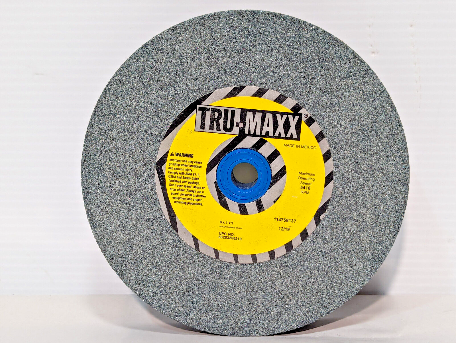 Tru-Maxx 6" x 1" x 1", 60 Grit Coarse Bench & Press Grinding Wheel. Silicon Carbide. UPC 66253255219. 5410 RPM. Made in Mexico. 114758137 12/19. New old stock. From the stockroom of a closing industrial facility. Untested but presumed to be working well. Note: This price is for one unit even though multiple are pictured. Free Shipping.