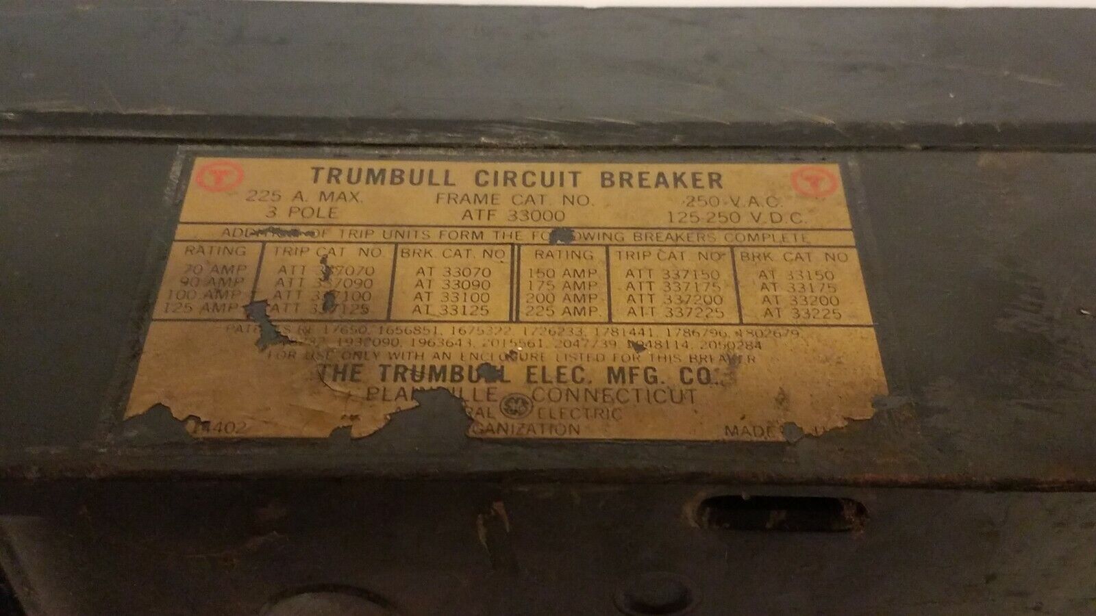 Trumbull circuit breaker, AT 33125, 125 amps, 3 poles, 250VAC, 125/250VDC