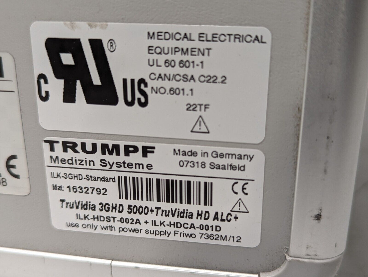 Trumpf TruVidia HD 5000 1632792, TruVidia 3GHD 5000+ TruVidia HD ALC+ with case as pictured. From a closing medical facility. Untested but presumed to be working well.