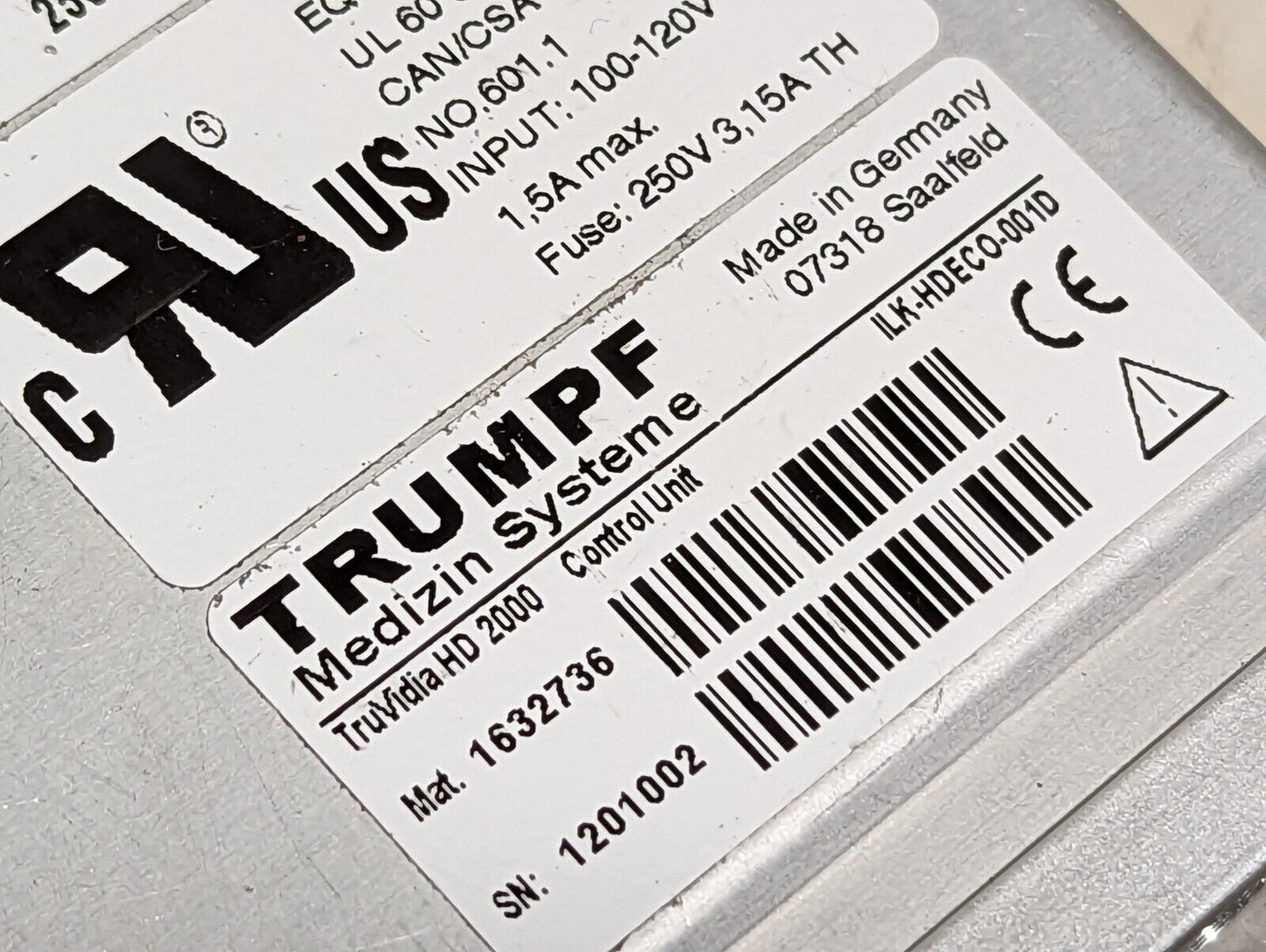 Trumpf TruVidia HD2000 control unit, 1632736, video controller. From a closing university laboratory stockroom. Powered on, but untested beyond that; presumed to be working well.
