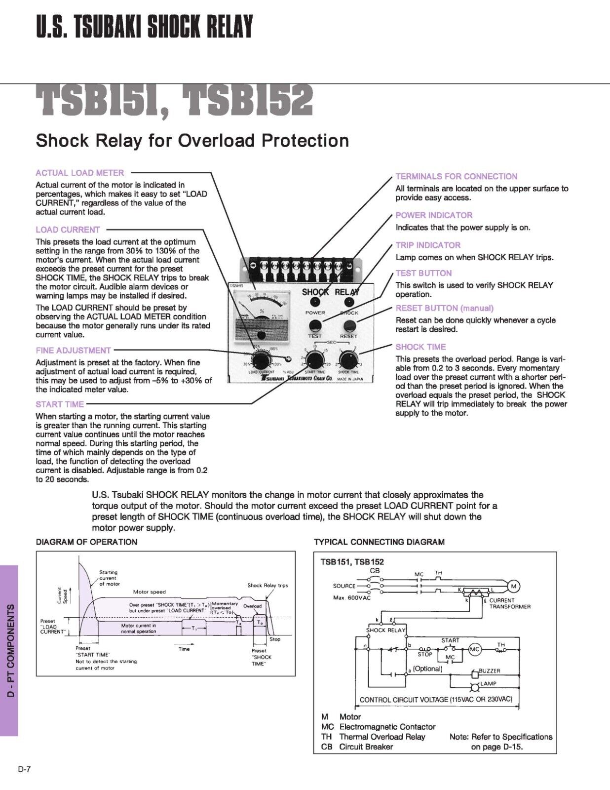 Tsubakimoto Chain TSB151 shock relay, 115/230VAC source, input AC 5 mA